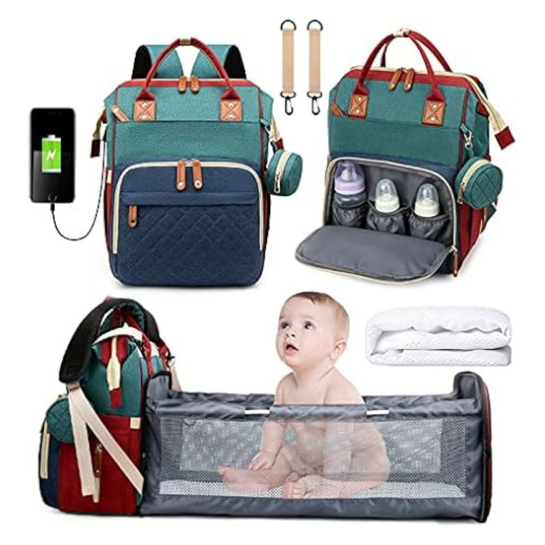 - Design: 2-in-1 Rucksack mit integriertem Wickelbett