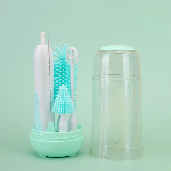 Das 6-in-1 Flaschen Reinigungs-Set macht Babyflaschen, Sauger und Zubehör blitzsauber! Mit speziellen Bürsten für jede Ecke und aus lebensmittelechtem, BPA-freiem Material ist es sicher für Ihr Baby – und platzsparend in der Aufbewahrung.