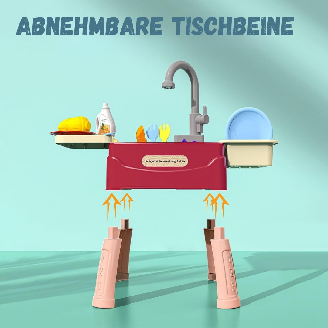 ✔ Trainiert Feinmotorik – Töpfe greifen, Wasser aufdrehen und Geschirr „abspülen“ – perfekt für kleine Hände
