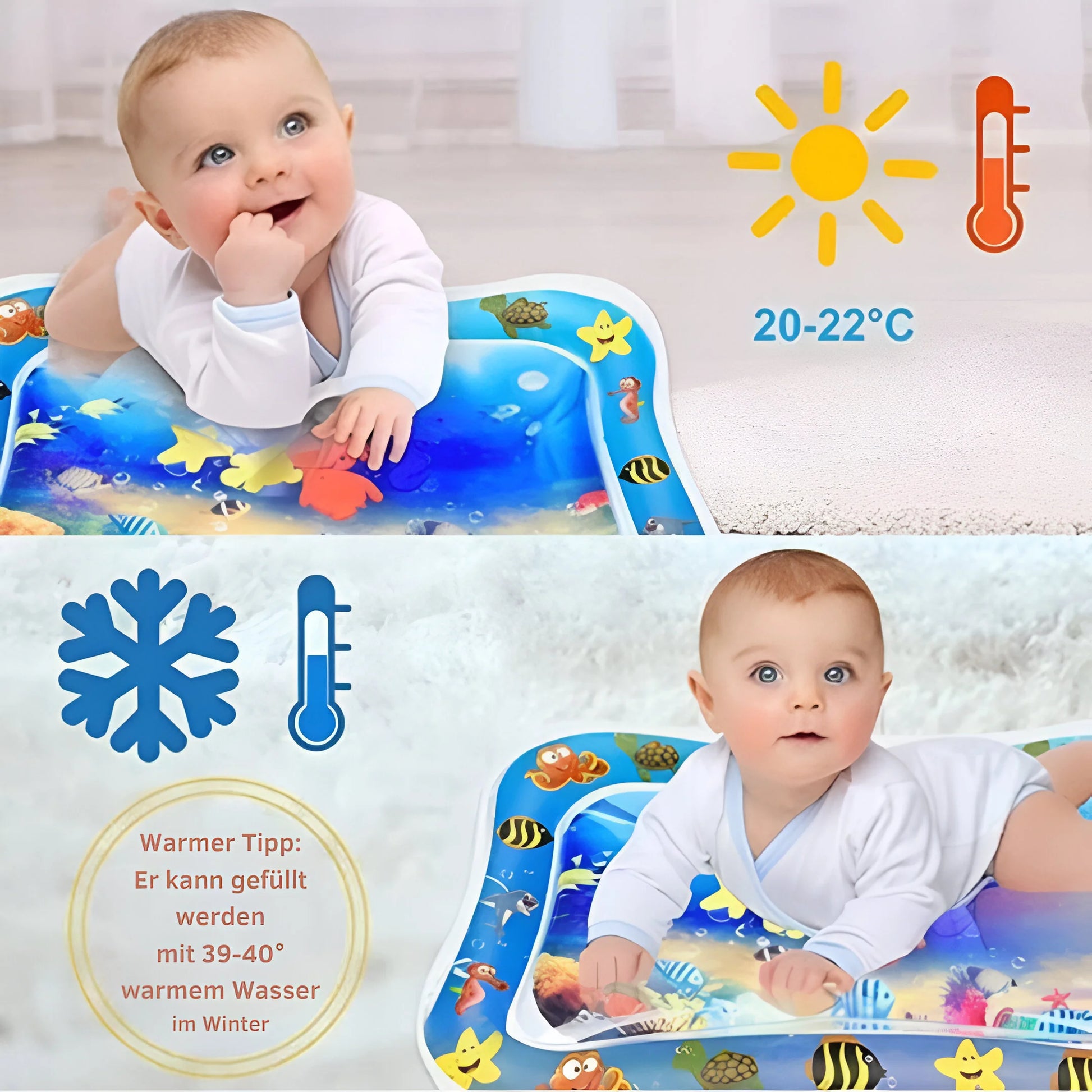 Drücken, Staunen & Stärken – mit der aufblasbaren Baby-Wassermatte wird die Bauchzeit zu einem echten Erlebnis! Während dein Baby die bunten Meeresbewohner beobachtet und mit ihnen spielt, werden gleichzeitig Muskeln, Sinne und Koordination gefördert – ideal für die ersten Entwicklungsschritte!