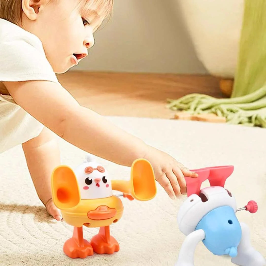 Drehen, staunen & lachen – die aufziehbare Purzelbaum Ente bringt Leben ins Kinderzimmer! Mit wenigen Handgriffen purzelt die niedliche Ente fröhlich über den Boden und sorgt für strahlende Augen, Neugier und motorisches Training – perfekt für kleine Entdecker ab 1 Jahr.