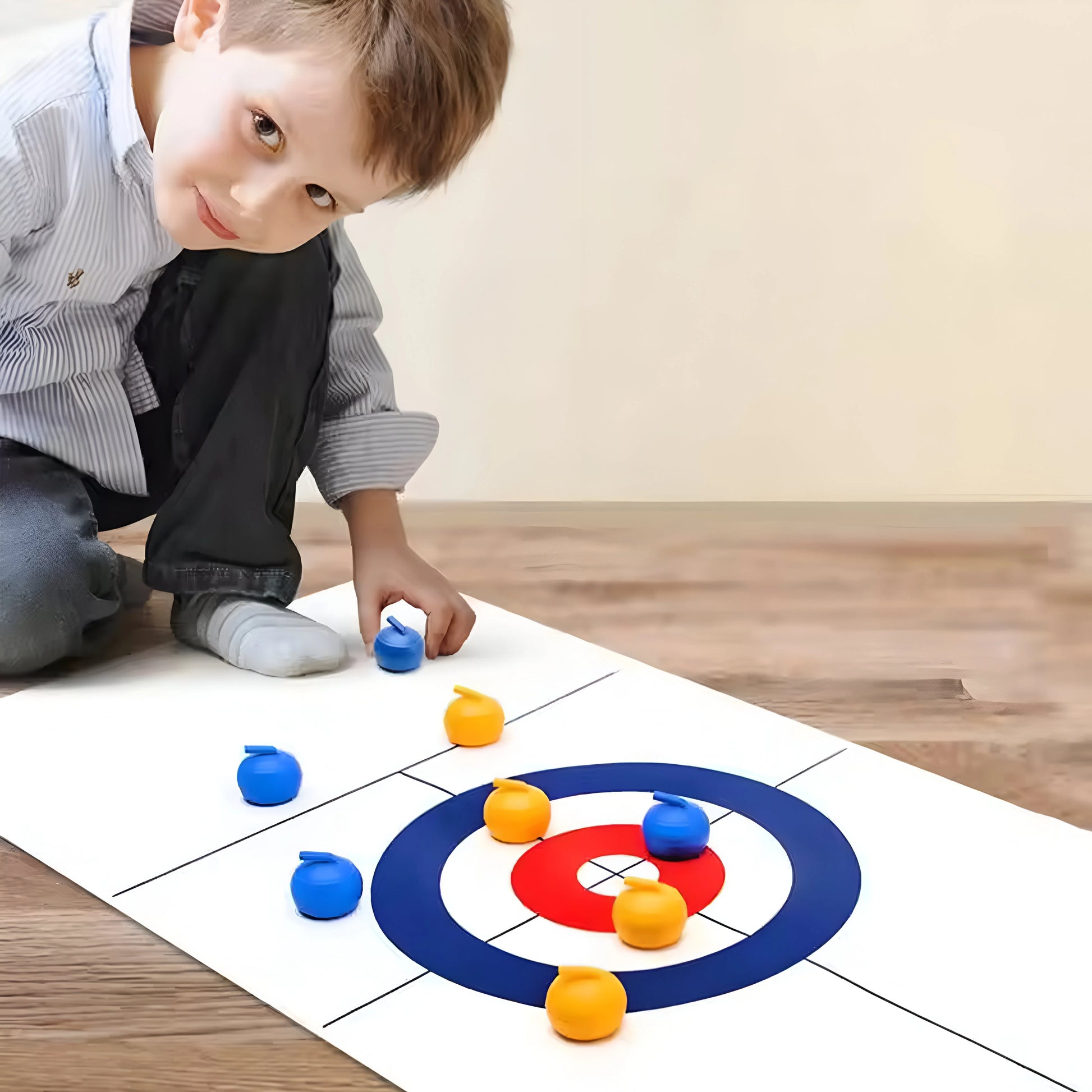 - Material: Robuste Matte und hochwertige Curling-Steine mit glatter Unterseite