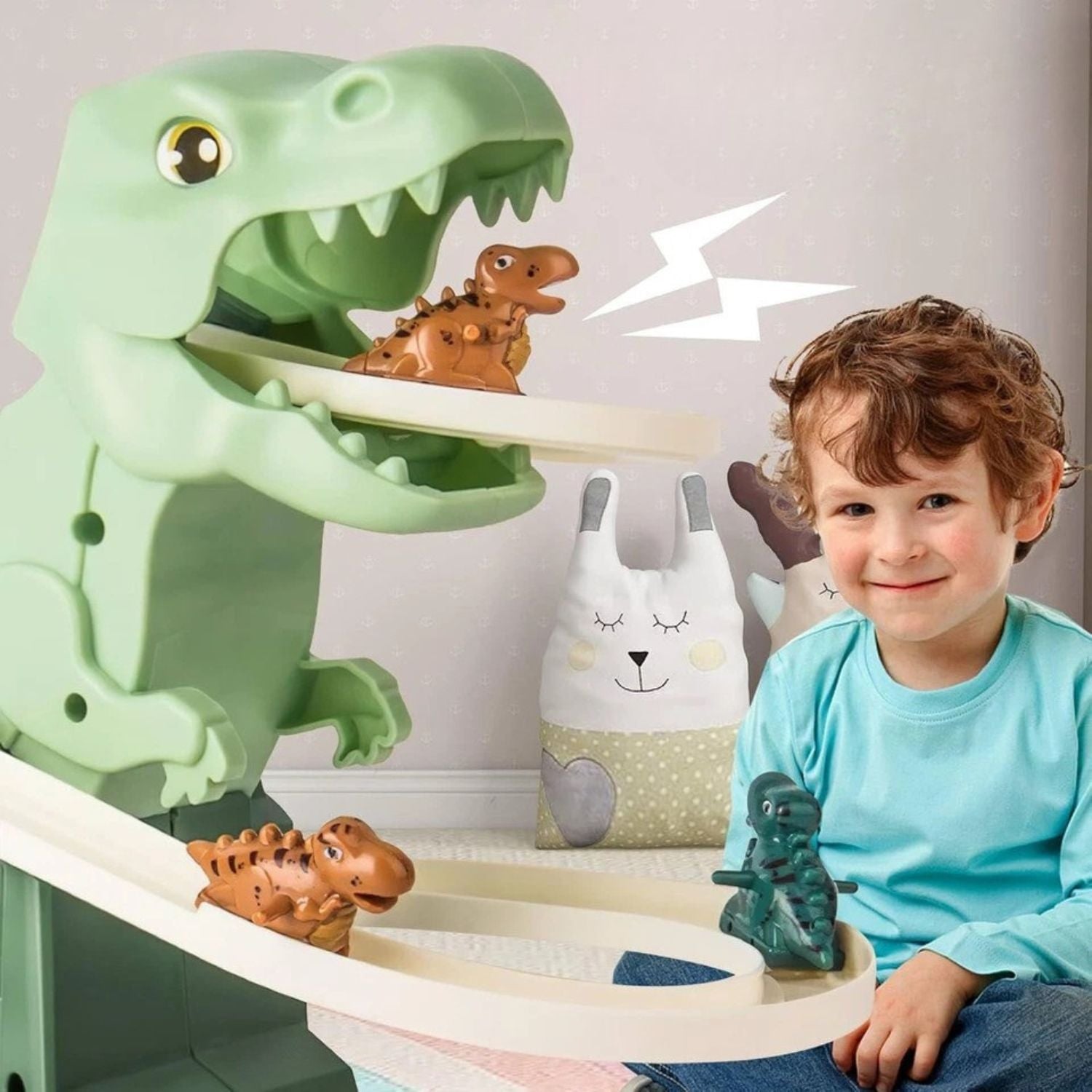 Mach dich bereit für eine spektakuläre Dino-Show mit Lichtern, Musik und kletternden Mini-Dinos! Die DinoRutsche ist ein interaktives Spielzeug, das Kinder in eine faszinierende Welt aus Bewegung, Klang und Abenteuer entführt – ein echter Hingucker im Kinderzimmer.