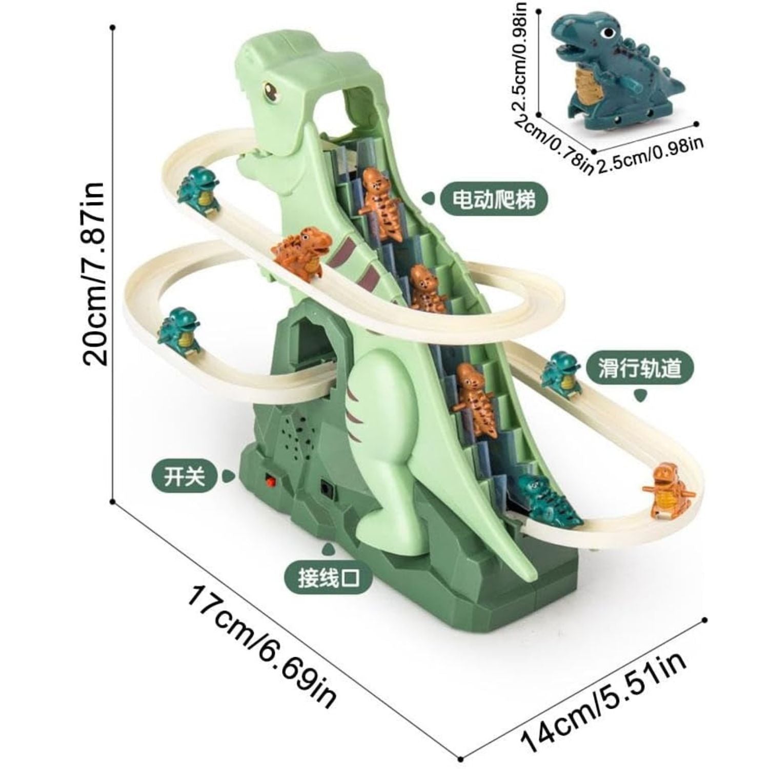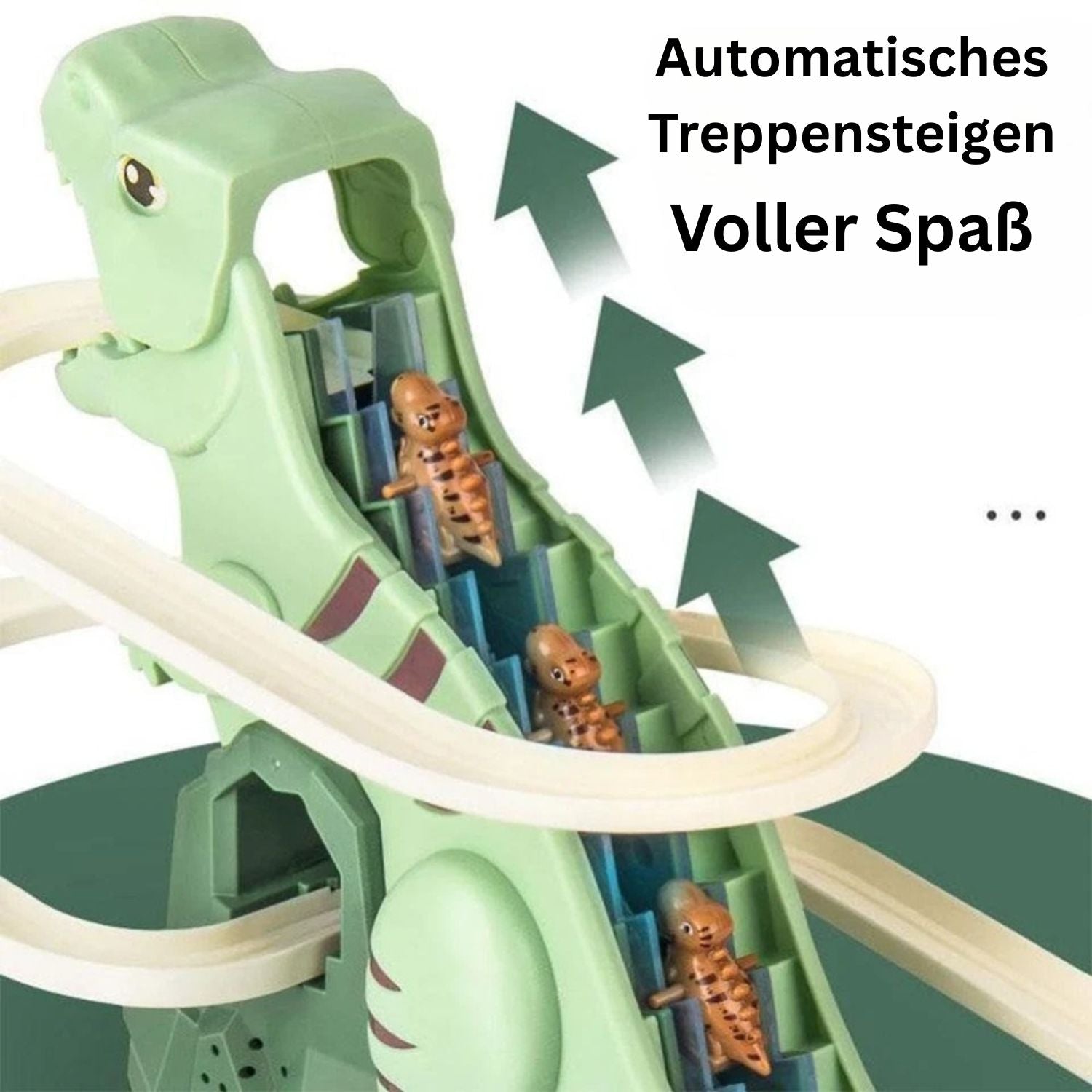 ✅ Leuchtende Dino-Bahn mit Musik – Kleine Dinosaurier erklimmen automatisch die Treppe und rutschen mit Musik und Lichteffekten durch den Dino-Tunnel