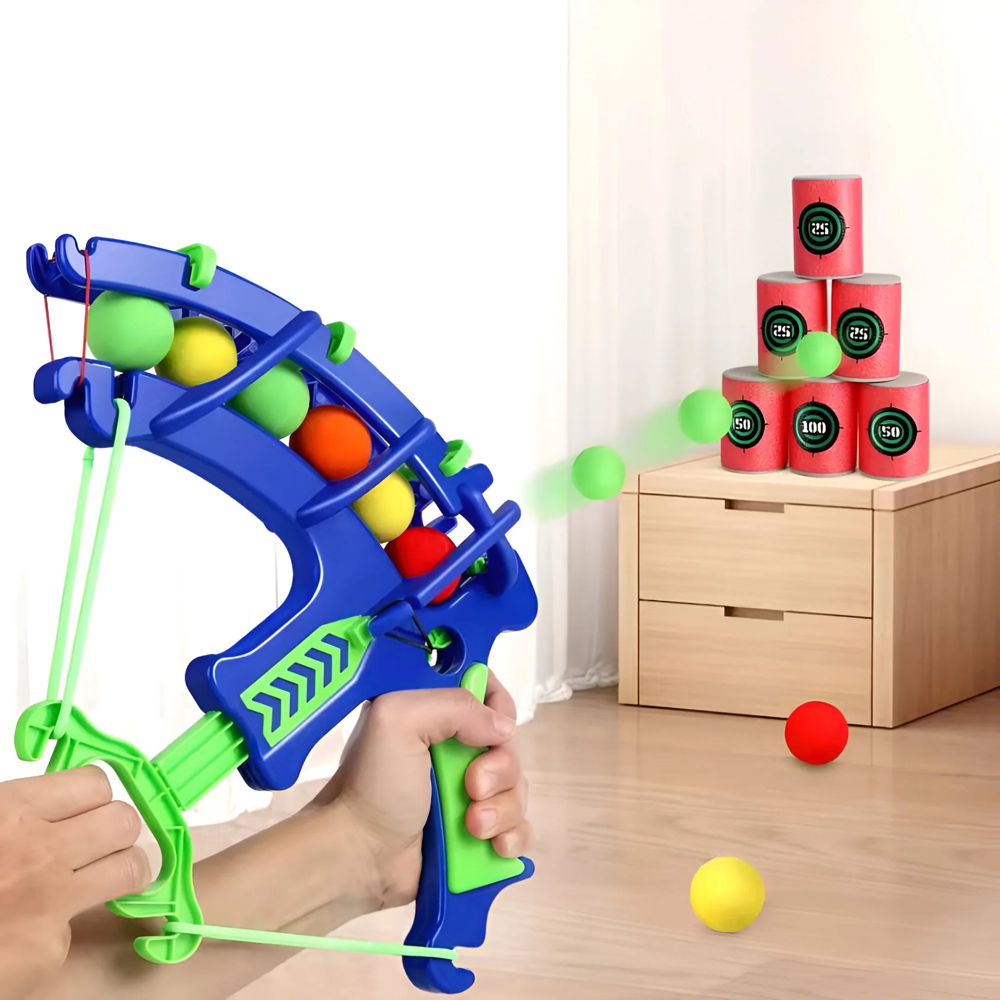 Der DosenBlitz ist das perfekte Spielzeug für kleine Schützen! Dieses Montessori-inspirierte Bogenschieß-Set fördert spielerisch die Hand-Auge-Koordination und sorgt für actiongeladenen Spielspaß – ob drinnen oder draußen.
