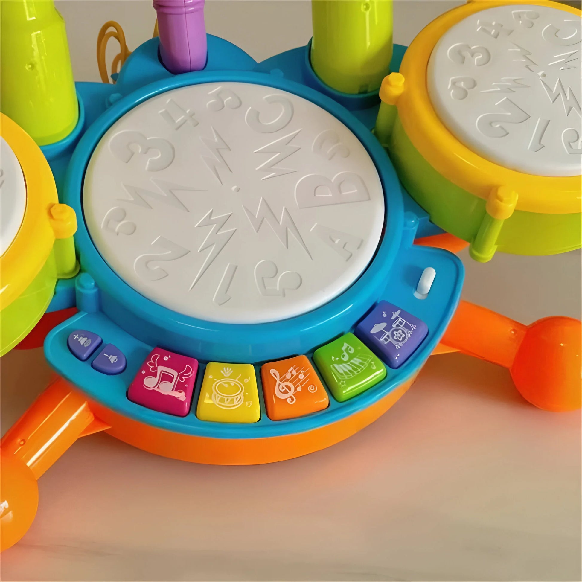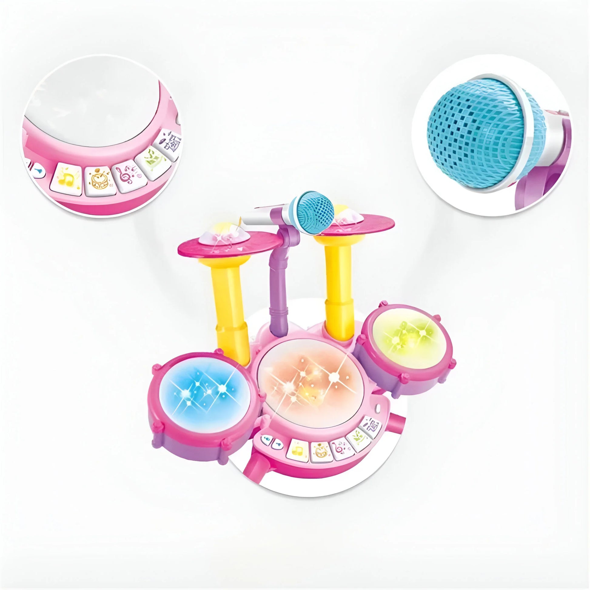 Das DrumStar Kinder-Trommelset bringt Musik und Begeisterung ins Kinderzimmer! Mit leuchtenden Effekten, fröhlichen Sounds und interaktiven Funktionen entdecken kleine Musiker spielerisch die Welt des Rhythmus und fördern dabei Kreativität und Motorik.