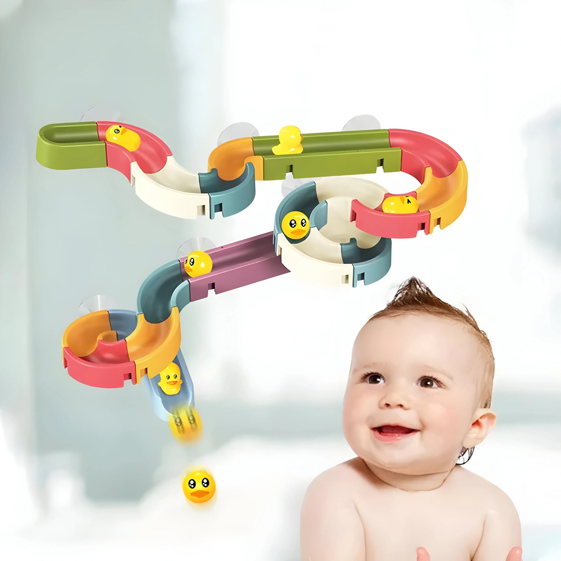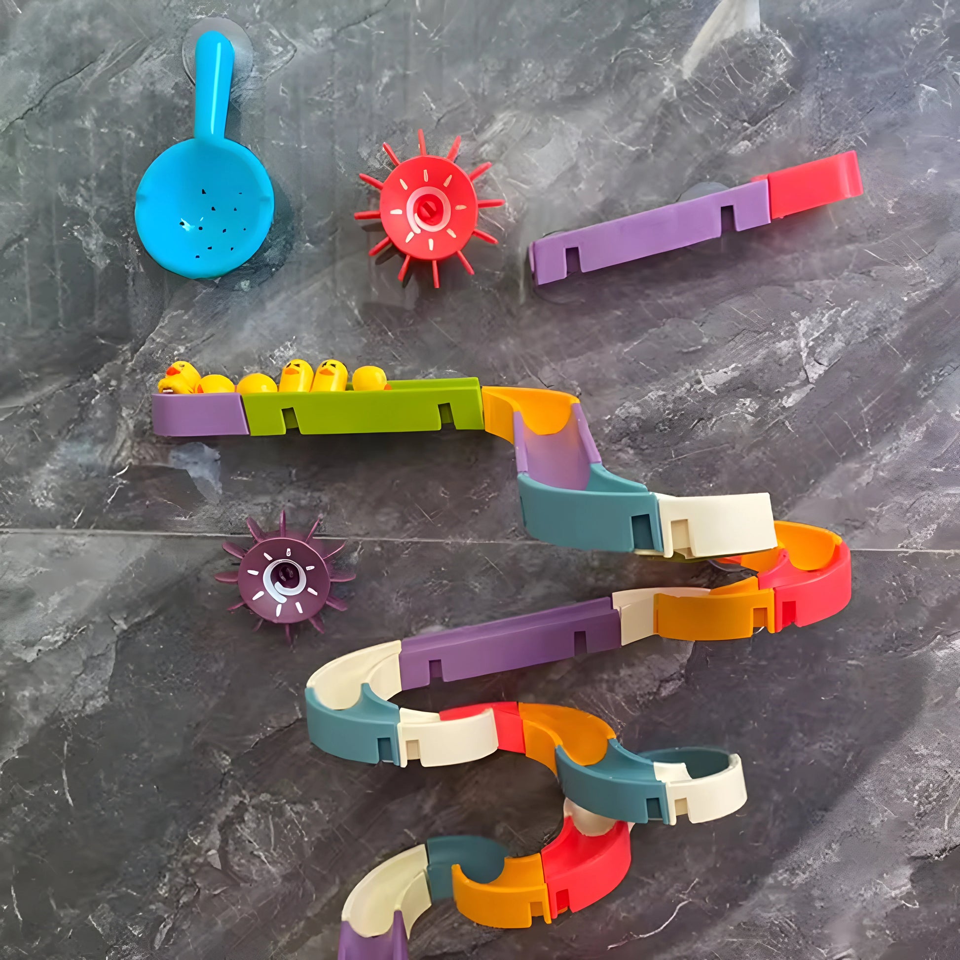 Verwandle die Badewanne in einen aufregenden Wasserspielplatz! Die DuckSlide Wasserrutsche sorgt für fröhliche Badezeiten und fördert spielerisch die Entwicklung deines Kindes. Mit bunten Steckteilen zum Zusammenbauen und süßen Enten zum Hinuntersausen wird jedes Bad zu einem spannenden Abenteuer.