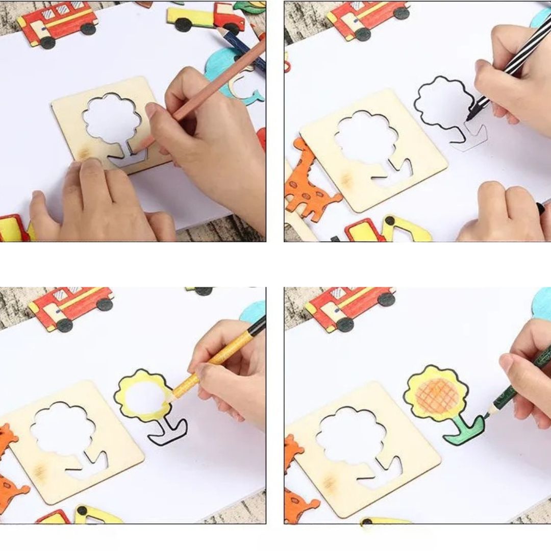 Mit den FormenKunst-Schablonen tauchen Kinder in eine Welt voller Fantasie und Kreativität ein. Ob Tiere, Fahrzeuge oder fantasievolle Muster – mit den vielseitigen Formen entstehen im Handumdrehen einzigartige Kunstwerke. Ganz nebenbei werden Konzentration, Motorik und die Freude am Gestalten gefördert.