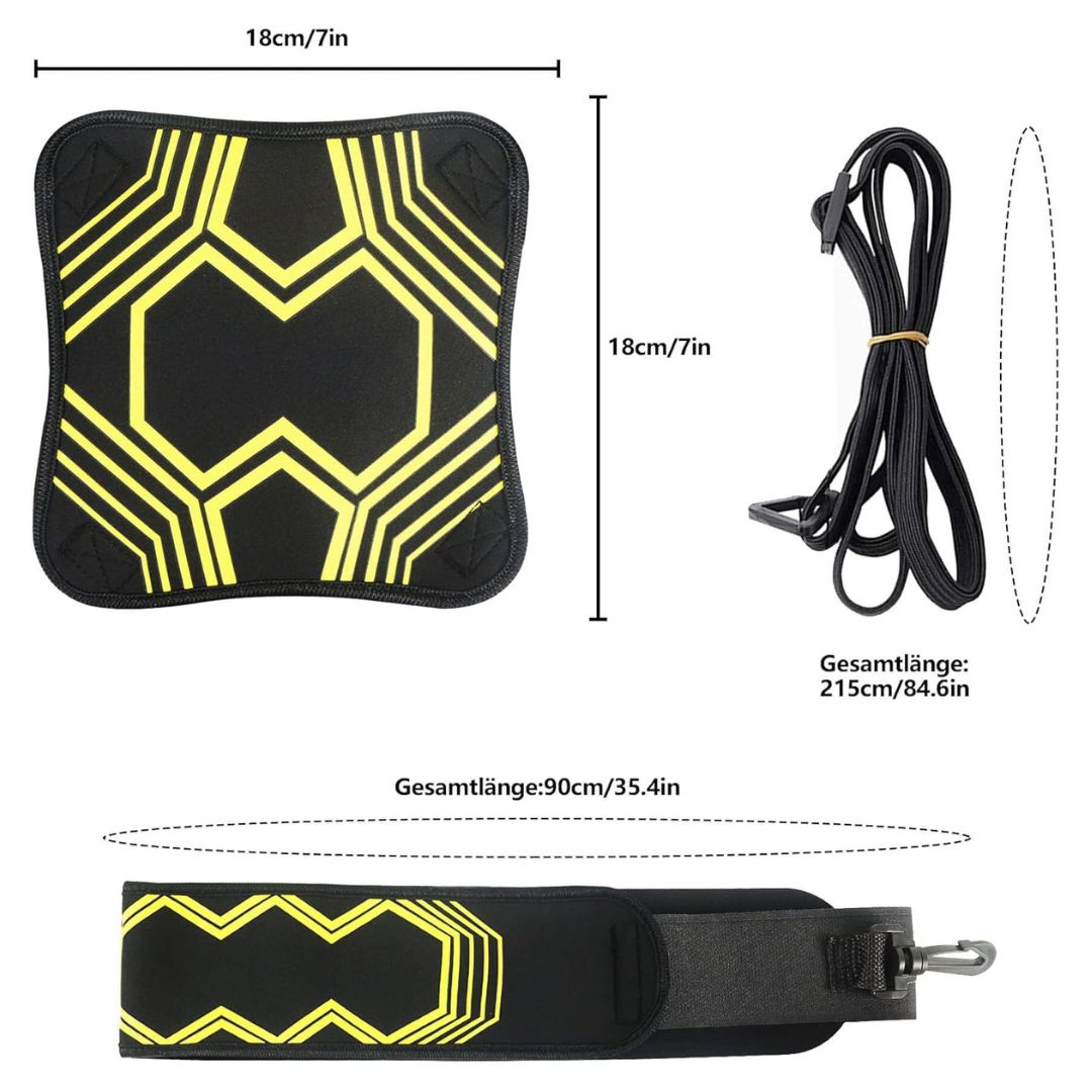 Mit dem Fußball Trainingsgürtel bringst du dein Spiel aufs nächste Level! Egal ob Dribbling, Ballführung oder Reaktionsschnelligkeit – dieses clevere Trainingsgerät macht effektives Technik- und Ballgefühl-Training jederzeit möglich. So kannst du deine Fähigkeiten verbessern, ohne auf Mitspieler angewiesen zu sein.