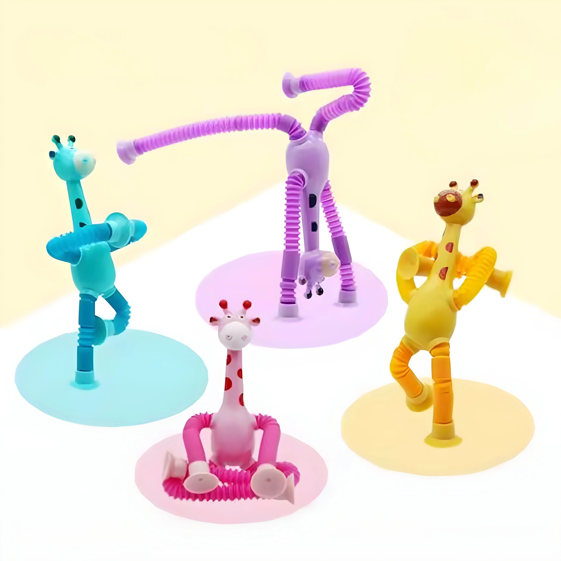 Dieses flexible Giraffen-Spielzeug mit starken Saugnäpfen bringt Freude und Abwechslung in den Alltag deines Kindes. Die beweglichen Arme und Beine lassen sich in verschiedene Richtungen biegen, fördern die Feinmotorik und regen die kreative Vorstellungskraft an. Dank der kräftigen Saugnäpfe bleibt die Giraffe sicher auf glatten Oberflächen haften – ideal für unterwegs oder zu Hause.