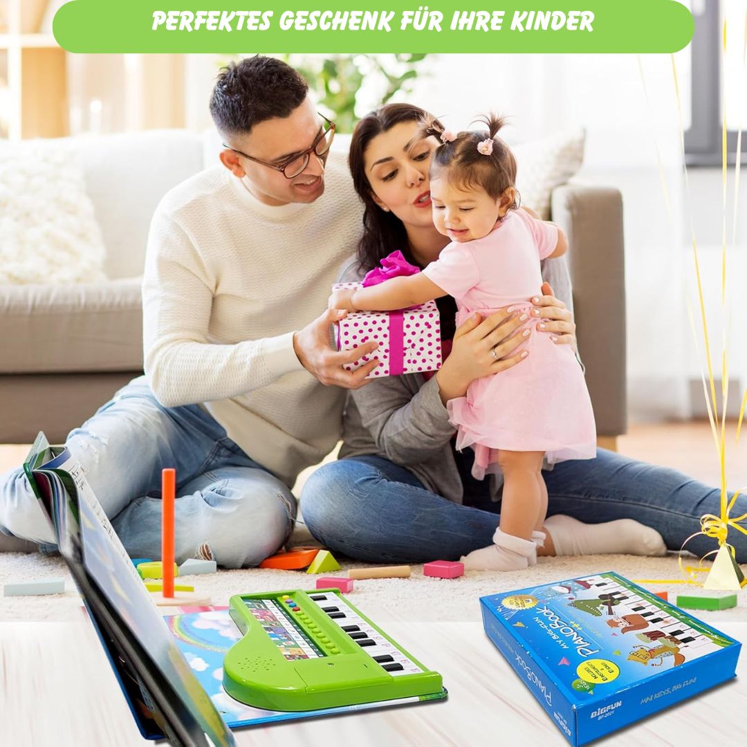 ... es Musik, Lernen und Spaß vereint! Das interaktive Klavierbuch fördert nicht nur musikalische Fähigkeiten, sondern schenkt Kindern auch wertvolle kreative Erlebnisse – und das ganz ohne Druck oder Vorkenntnisse.