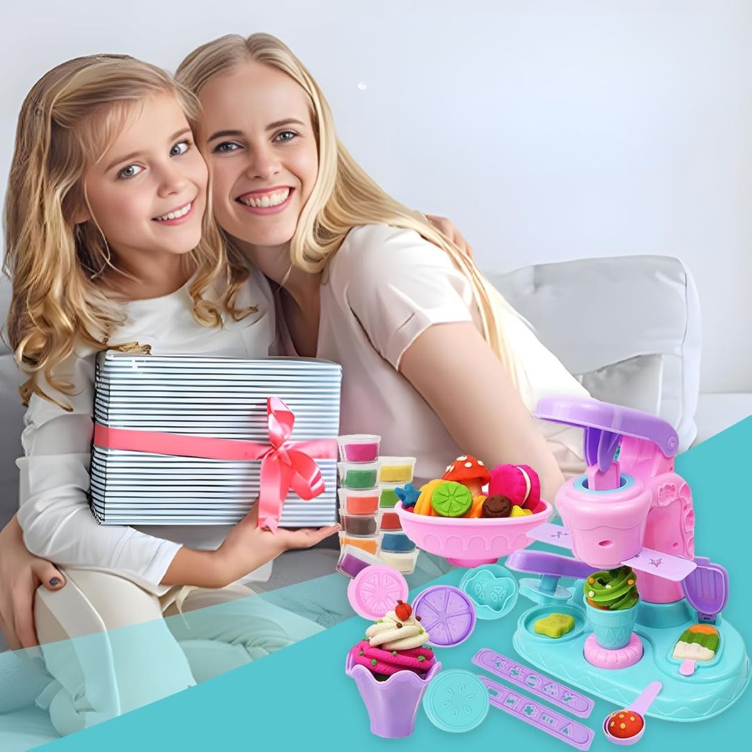 es kreatives Spielen ohne Bildschirmzeit ermöglicht. Die Knet-Eismaschine regt die Fantasie an, bringt Struktur ins Spiel und lässt Kinder ganz in ihrer eigenen kleinen Eiswelt aufgehen – ganz ohne Schmelzgefahr!