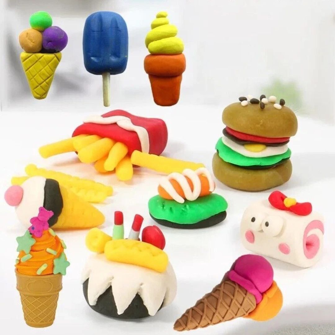 Fantasie trifft auf Knetkunst! Mit der Knet-Eismaschine können Kinder ihre eigenen, farbenfrohen "Eisbecher" gestalten. Ob Softeis, Waffeln oder verrückte Toppings – hier wird geknetet, gedrückt und dekoriert, was das Zeug hält. Ideal für kleine Kreative ab 3 Jahren, die spielerisch ihre Feinmotorik trainieren möchten.