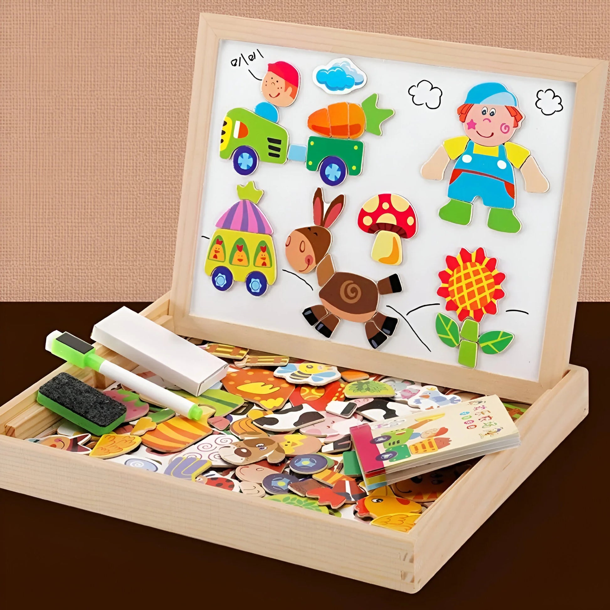 ✔ Interaktives Lernen – Magnetische Puzzleteile helfen spielerisch beim Erlernen von Formen, Zahlen und Buchstaben.