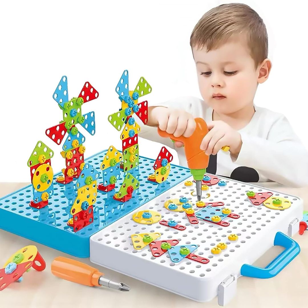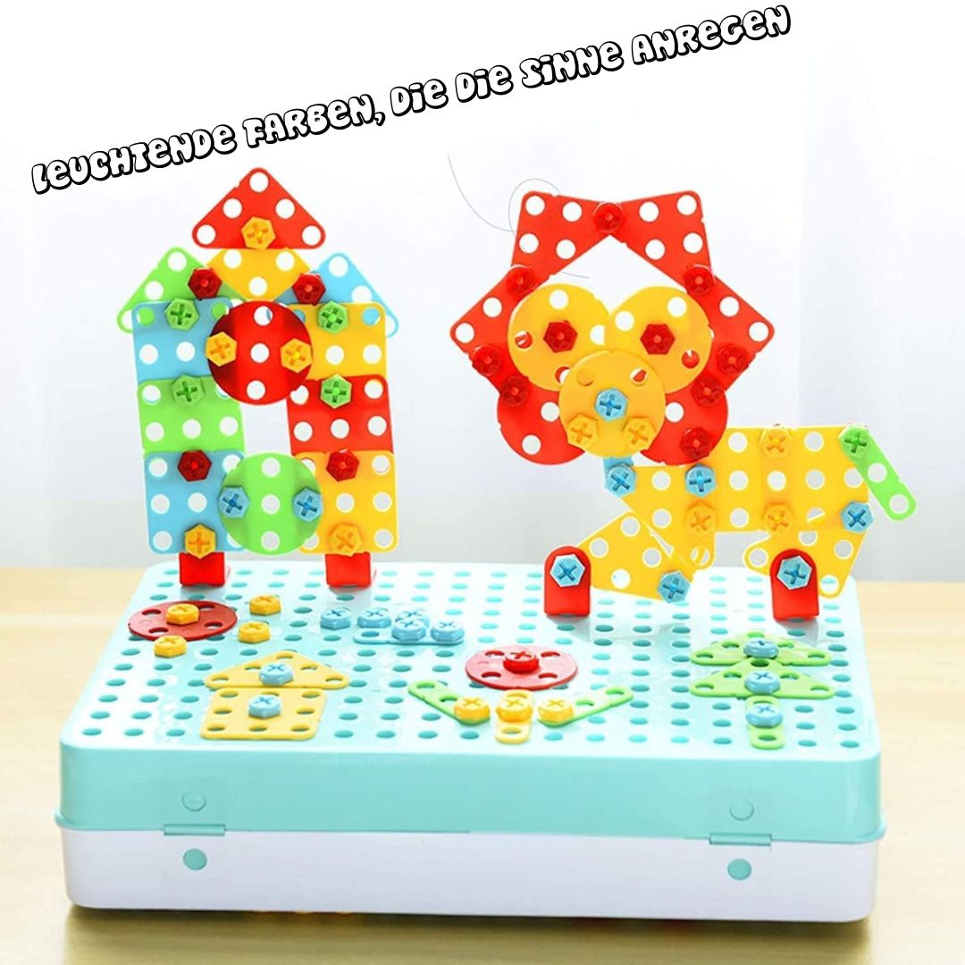 Mit der Kreativ Montage Spielzeug Box entdecken Kinder die Welt des Bauens auf spielerische Weise. Ob Fahrzeuge, Tiere oder fantasievolle Konstruktionen – mit 315 Teilen und einer elektrischen Bohrmaschine sind der Kreativität keine Grenzen gesetzt. Hier wird nicht nur geschraubt – hier wird gedacht, geplant und stolz präsentiert!