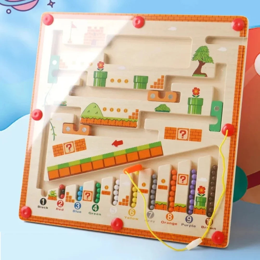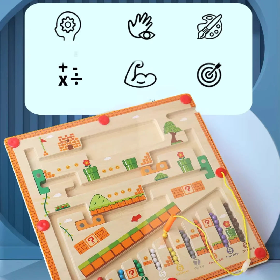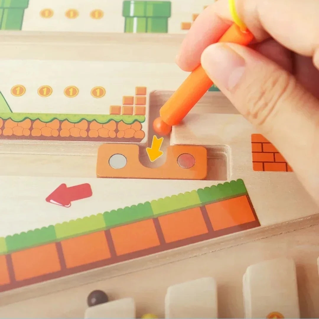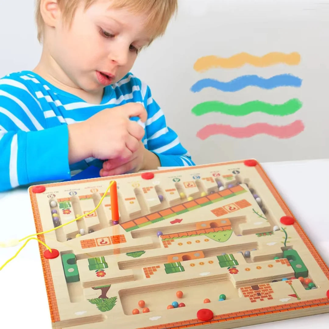 Das MagnaMaze Holzlabyrinth ist mehr als nur ein Spiel – es ist eine spannende Herausforderung für kleine Entdecker! Mit dem Magnetstift navigieren Kinder bunte Kugeln durch das Labyrinth, schulen ihre Hand-Auge-Koordination, verbessern ihre Feinmotorik und trainieren spielerisch ihr logisches Denken. Perfekt für Montessori-inspirierte Lernmomente!
