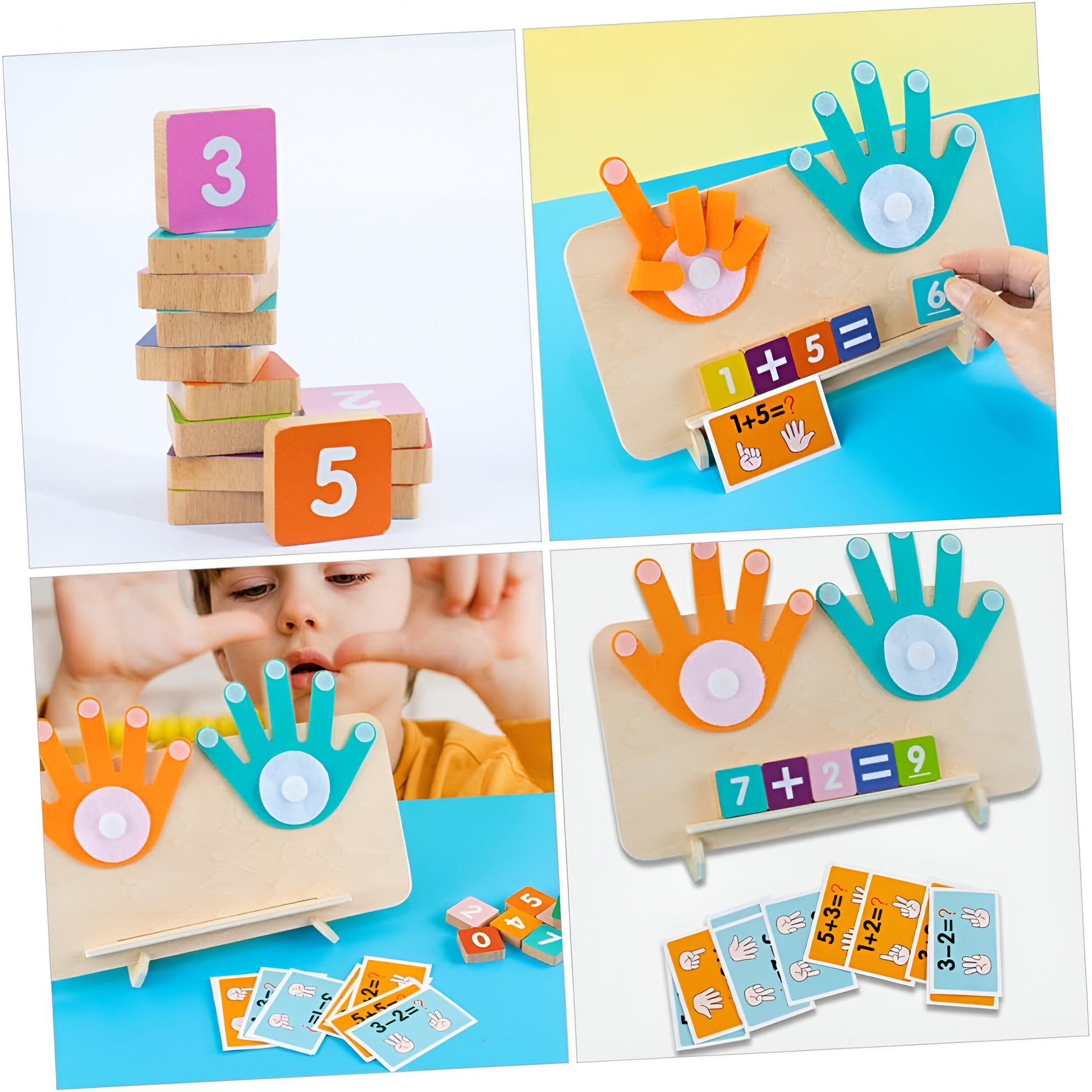 Das Montessori Finger Mathe Lernspiel bietet Kindern eine interaktive Möglichkeit, die Grundlagen der Mathematik auf spielerische Weise zu entdecken. Durch das Einsetzen ihrer eigenen Finger in Kombination mit farbenfrohen Zahlen und Symbolen lernen Kinder, Zahlen zu begreifen und einfache Rechenaufgaben zu lösen. Ideal für den Einstieg in die Welt der Mathematik!