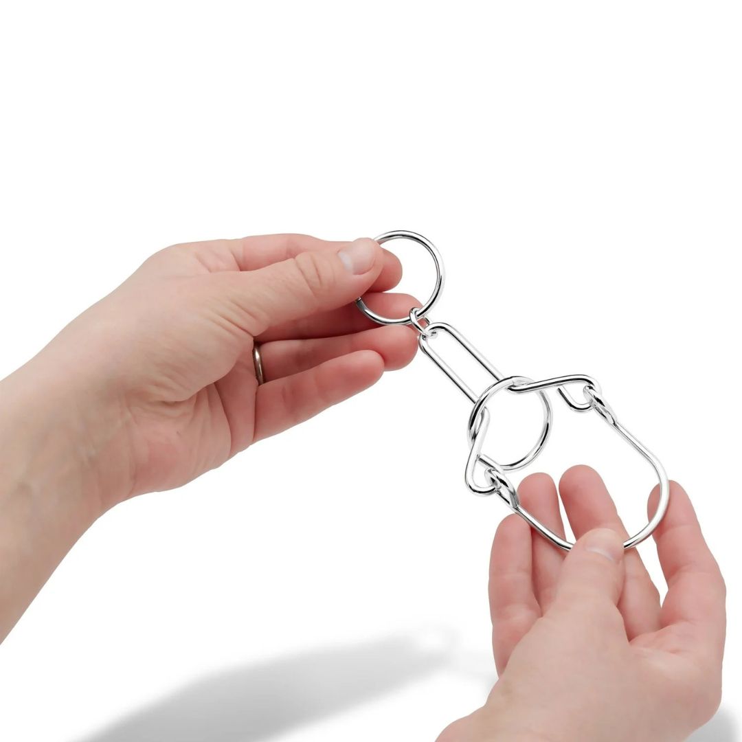 Der RätselRing ist mehr als nur ein Spiel – er ist ein Gehirntrainer, der Denkvermögen, Geduld und Koordination spielerisch fördert. Aus hochwertigem Metall gefertigt, bietet er eine angenehme Haptik, ist rostfrei, langlebig und sicher für Kinderhände. Perfekt, um Kinder auf unterhaltsame Weise zu fordern und gleichzeitig Konzentration sowie Problemlösefähigkeiten zu stärken.