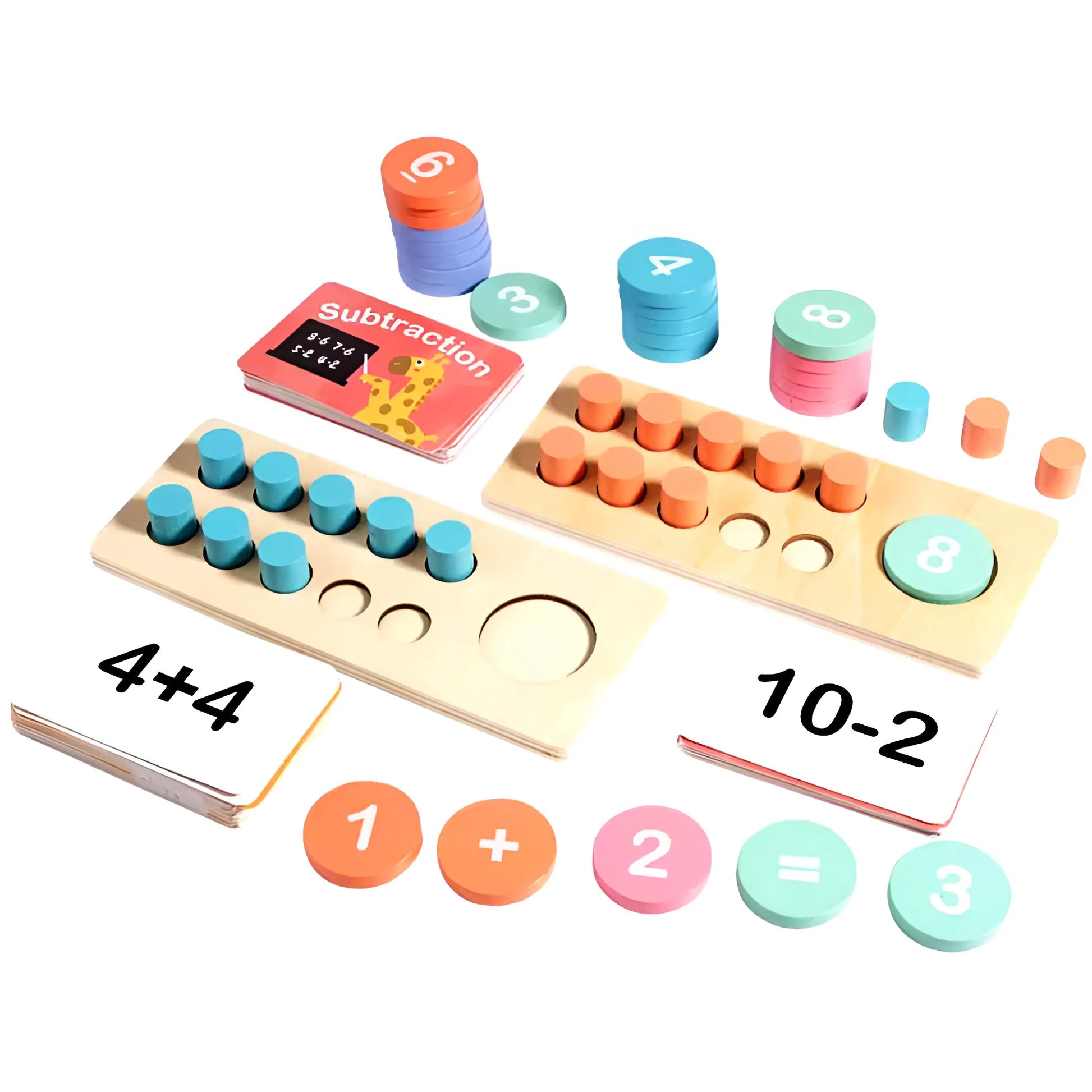 Mit dem RechenZauber Montessori Mathe Spielzeug wird Zahlenlernen zum spannenden Abenteuer! Das Set enthält 90 Lernkarten, 2 Spielbasen, 20 kleine Zylinder und 27 Zahlenchips – ideal, um Zählen, Addition und Subtraktion auf interaktive Weise zu üben.