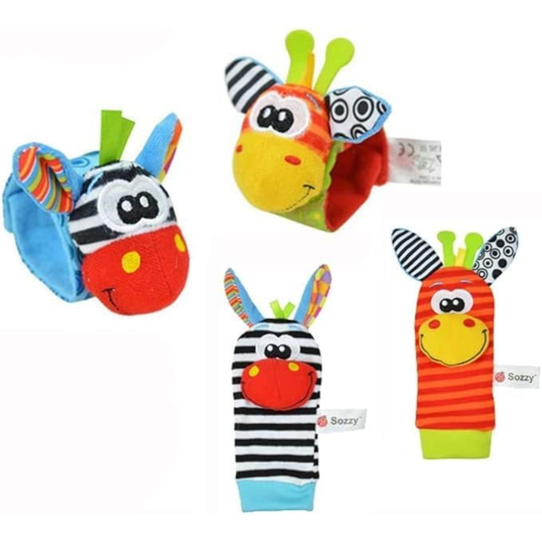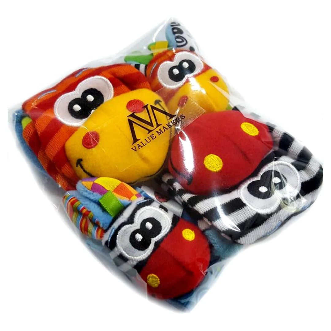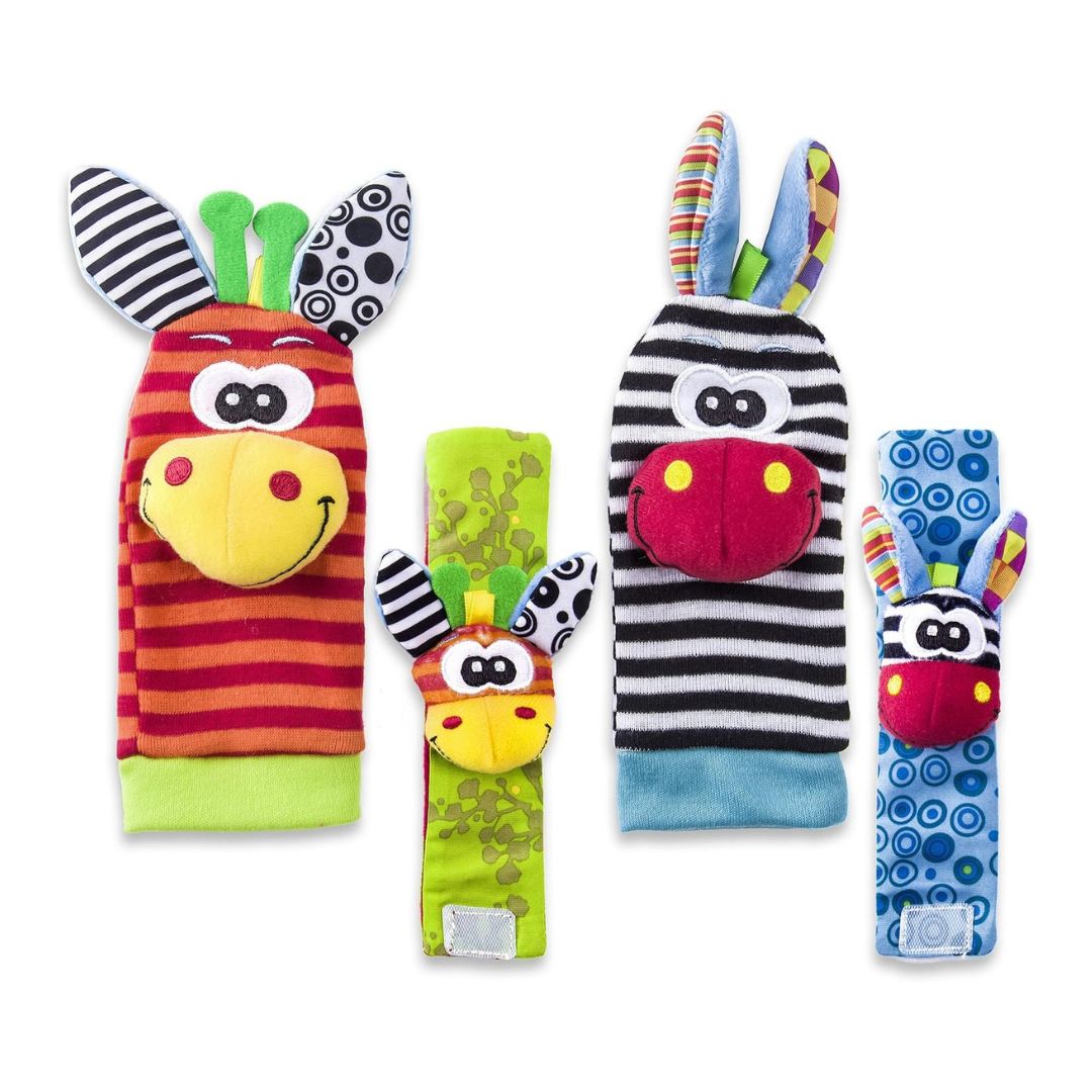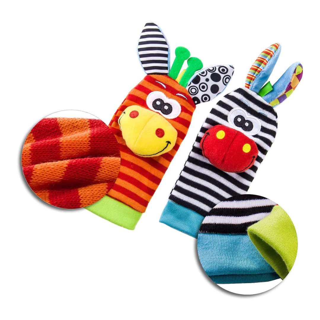 - Lieferumfang: 2 Plüschsocken & 2 Plüscharmbänder mit Rassel- & Quietschfunktion