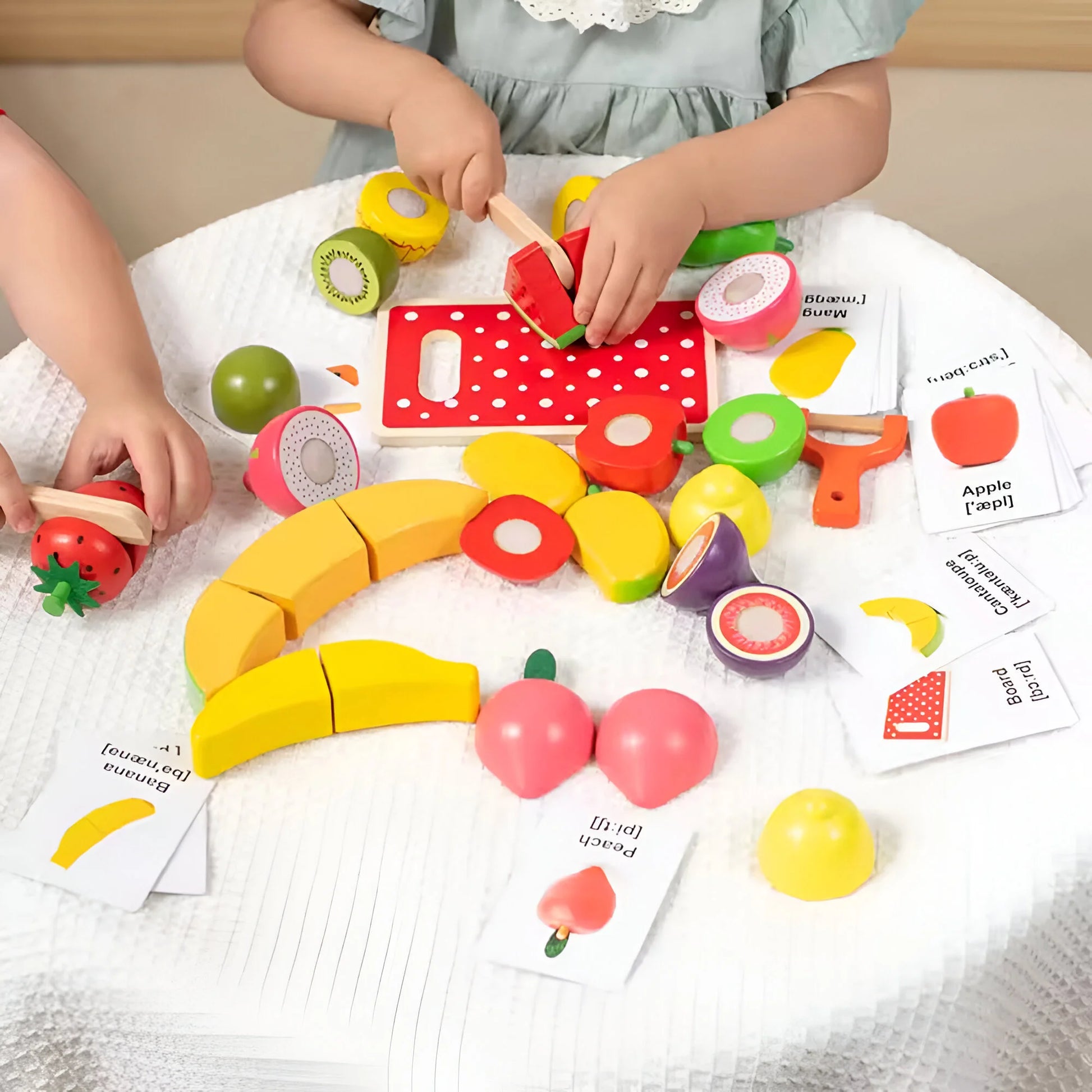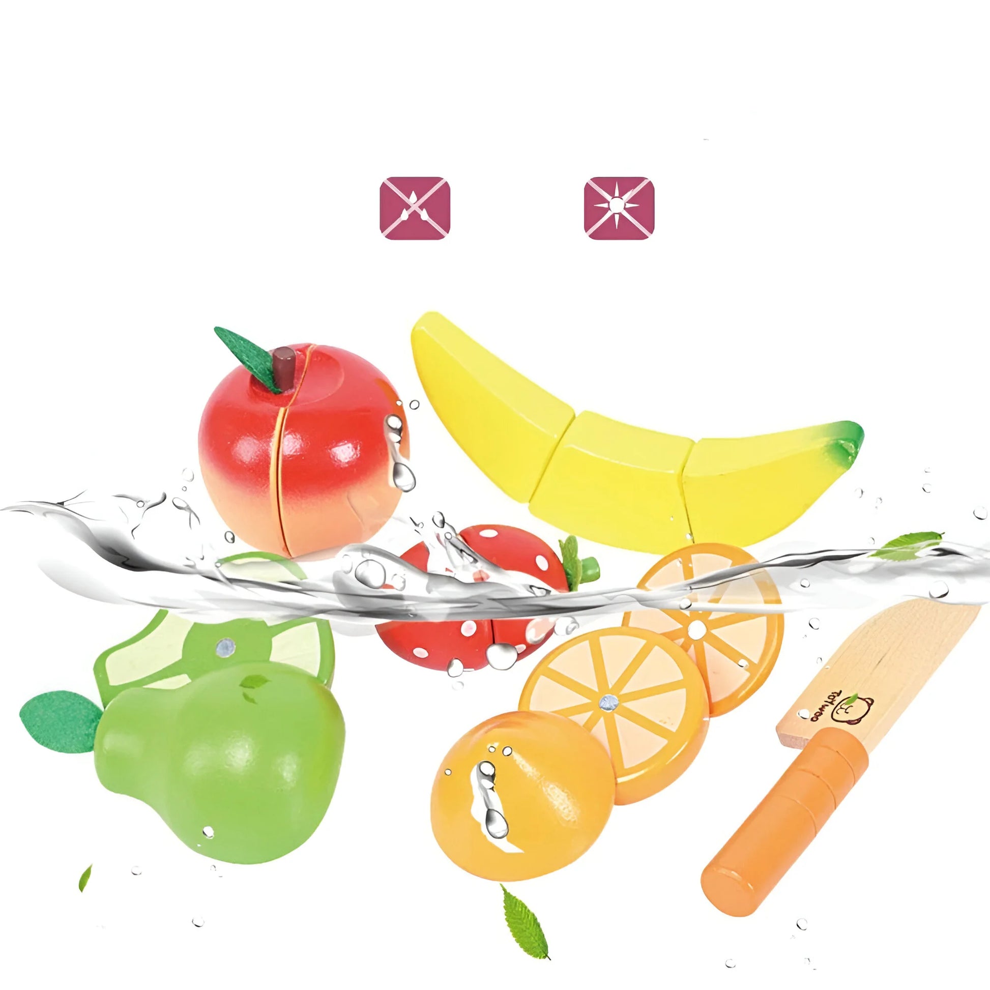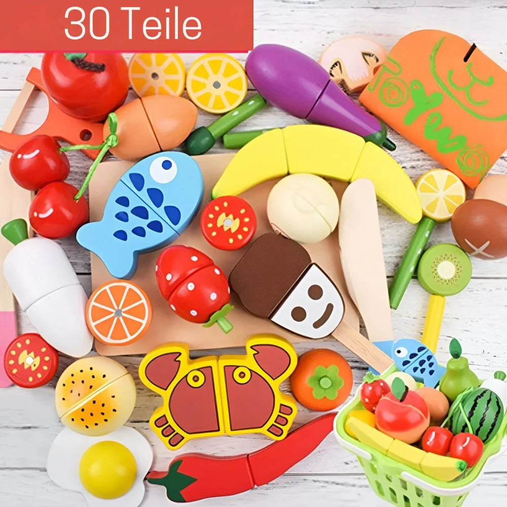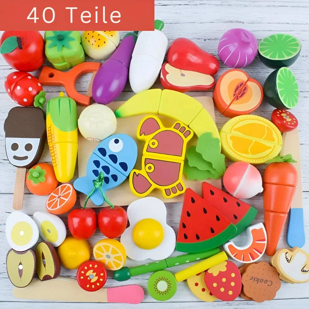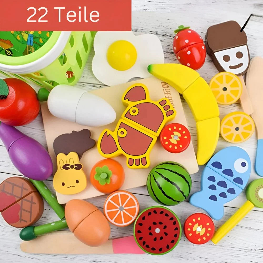Mit dem Montessori-Holzspielzeug entdecken Kinder spielerisch die Welt der Lebensmittel! Das bunte Set aus hochwertigem Holz enthält verschiedene Früchte & Gemüse, die mit dem beiliegenden Messer „geschnitten“ werden können. Perfekt, um Feinmotorik & ein Bewusstsein für gesunde Ernährung zu fördern!