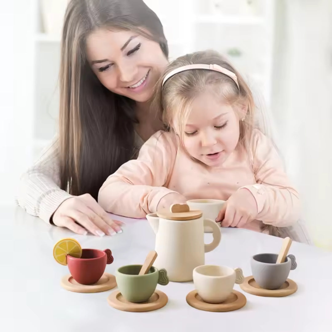Mit dem liebevoll gestalteten TeeTraum Teeservice aus Holz und Silikon entdecken Kinder eine neue Welt voller Geschichten, Rituale und gemeinsamer Momente. Ob beim Solo-Spiel oder im Freundeskreis – dieses farbenfrohe Set lädt zum kreativen Rollenspiel ein und fördert wichtige soziale Fähigkeiten wie Teilen, Zuhören und Kommunizieren. Ganz ohne Bildschirm, dafür mit umso mehr Fantasie, wird jede Teezeit zum unvergesslichen Erlebnis!